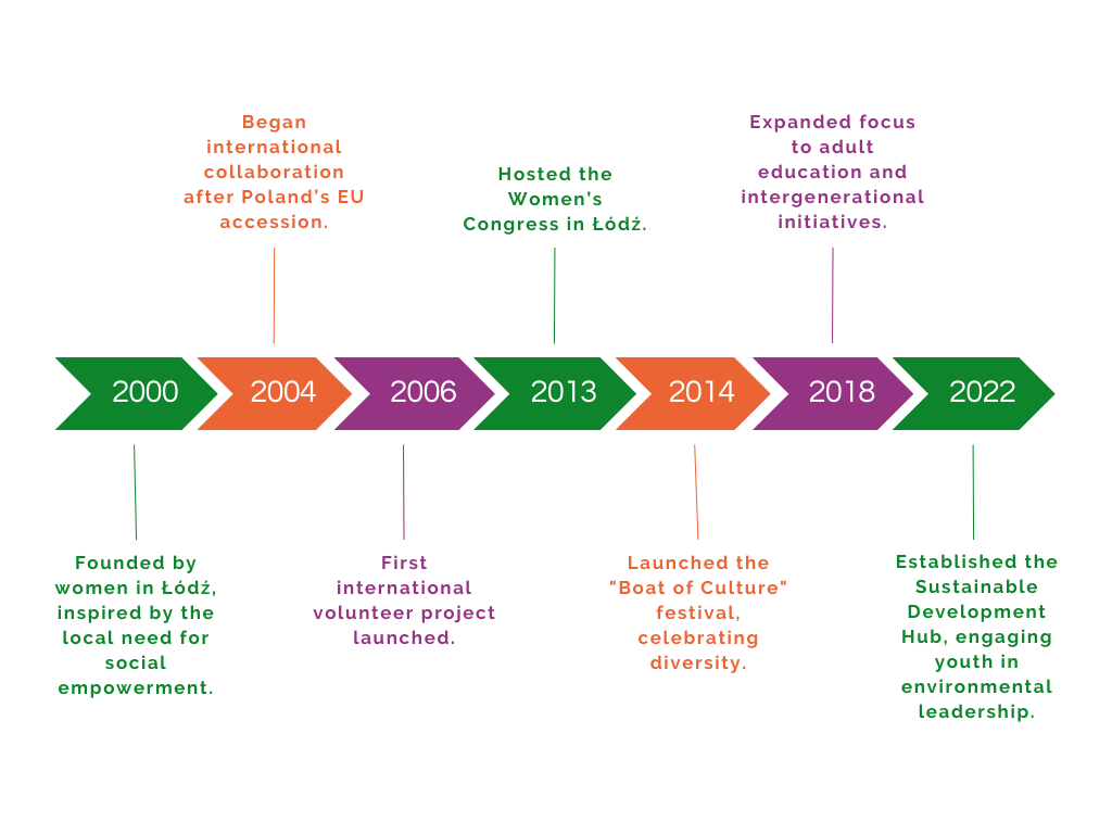 The organization was created in 2000. The founder, Bogna Stawicka, was previously an active worker in Łódź’s Center for Women’s Rights. During her work there, she recognized the need to make changes that prevent the factors leading to the formation of social issues such as discrimination, lack of independence, domestic violence etc.